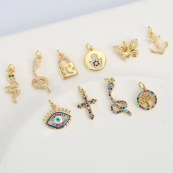 แฟชั่นไมโครแทรกเพทายเสน่ห์เครื่องประดับ DIY จี้ทองรูปสมอเรือล็อคงูผีเสื้อตาต้นไม้เสน่ห์