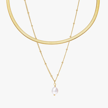 2025 Moda Çift Katmanlı Tatlı Su İncisi Yılan Zinciri Kolye 18 Ayar Altın Kaplama Paslanmaz Çelik Kolye Su Geçirmez Takı