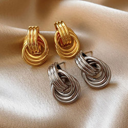 Bán Buôn Sang Trọng 18K Mạ Vàng Tuyên Bố Hình Học Bông Tai Phụ Nữ Thời Trang Hàn Quốc Multilayer Knotted Vòng Tròn Liên Kết Thả Bông Tai