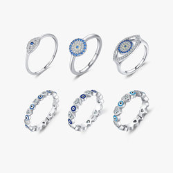 Sang Trọng Hình Trái Tim Zircon Nhẫn Phụ Nữ Giản Dị Vòng Tay Tốt S925 Sterling Bạc Màu Xanh Thổ Nhĩ Kỳ Mắt Ác Nhẫn Quà Tặng Cho Cô Gái