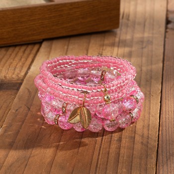 2025 Boho Lá Quyến Rũ Màu Hồng Đính Cườm Vòng Đeo Tay Thiết Lập 4Pcs Multilayer Căng Vòng Tay Mặt Dây Chuyền Vòng Đeo Tay Trang Sức Cho Phụ Nữ Cô Gái