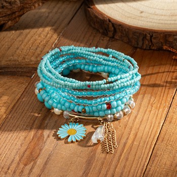 2025 Boho 9Pcs Vòng Đeo Tay Thiết Lập Màu Xanh Daisy Quyến Rũ Đính Cườm Vòng Đeo Tay Multilayer Căng Vòng Tay Mặt Dây Chuyền Trang Sức Cho Phụ Nữ Cô Gái