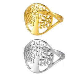 Thời trang đơn giản mạ vàng thép không gỉ nhẫn trang sức cá nhân Hollow Chunky Vòng Cây may mắn của cuộc sống nhẫn cho nam giới phụ nữ