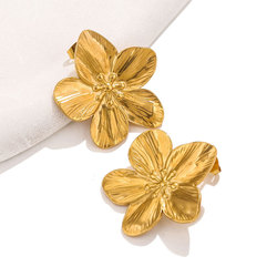 Thời Trang Tarnish Miễn Phí Mạ Vàng Thép Không Gỉ Bông Tai Retro Cung Điện Phong Cách 32Mm Kết Cấu Hoa Lớn Stud Bông Tai Cho Phụ Nữ
