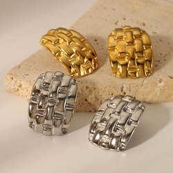Không gây dị ứng 18K mạ vàng thép không gỉ Stud Bông tai cao cấp retro vuông hình học dây đeo đồng hồ Bông tai kẻ sọc phụ nữ